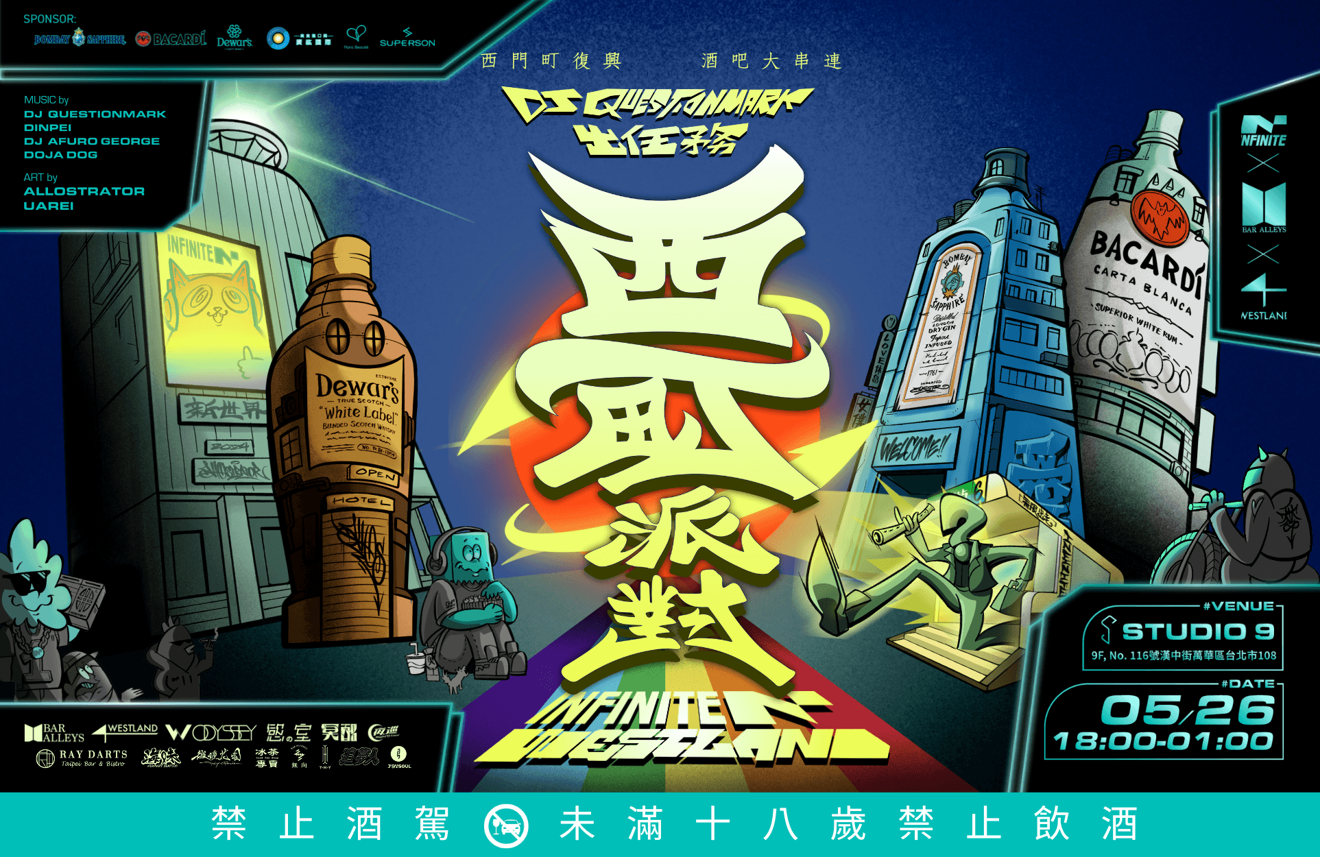 本次合作不只是藝術的聯名,更是文化價值的推廣。Allo 特別打造的主視覺揉合了 INFINITE 的品牌理念,也淋漓盡致地展現了台灣的在地文化與街頭精神。是對西門町活力的大膽詮釋,也是對參與每一場派對的年輕靈魂們的深情吶喊。