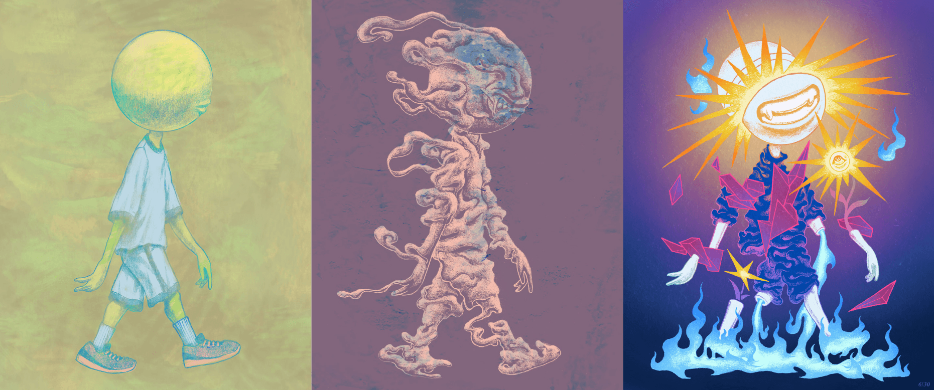 「魚全」的作品將意識流與超現實主義相融合,打造出一場引人入勝的藝術體驗。