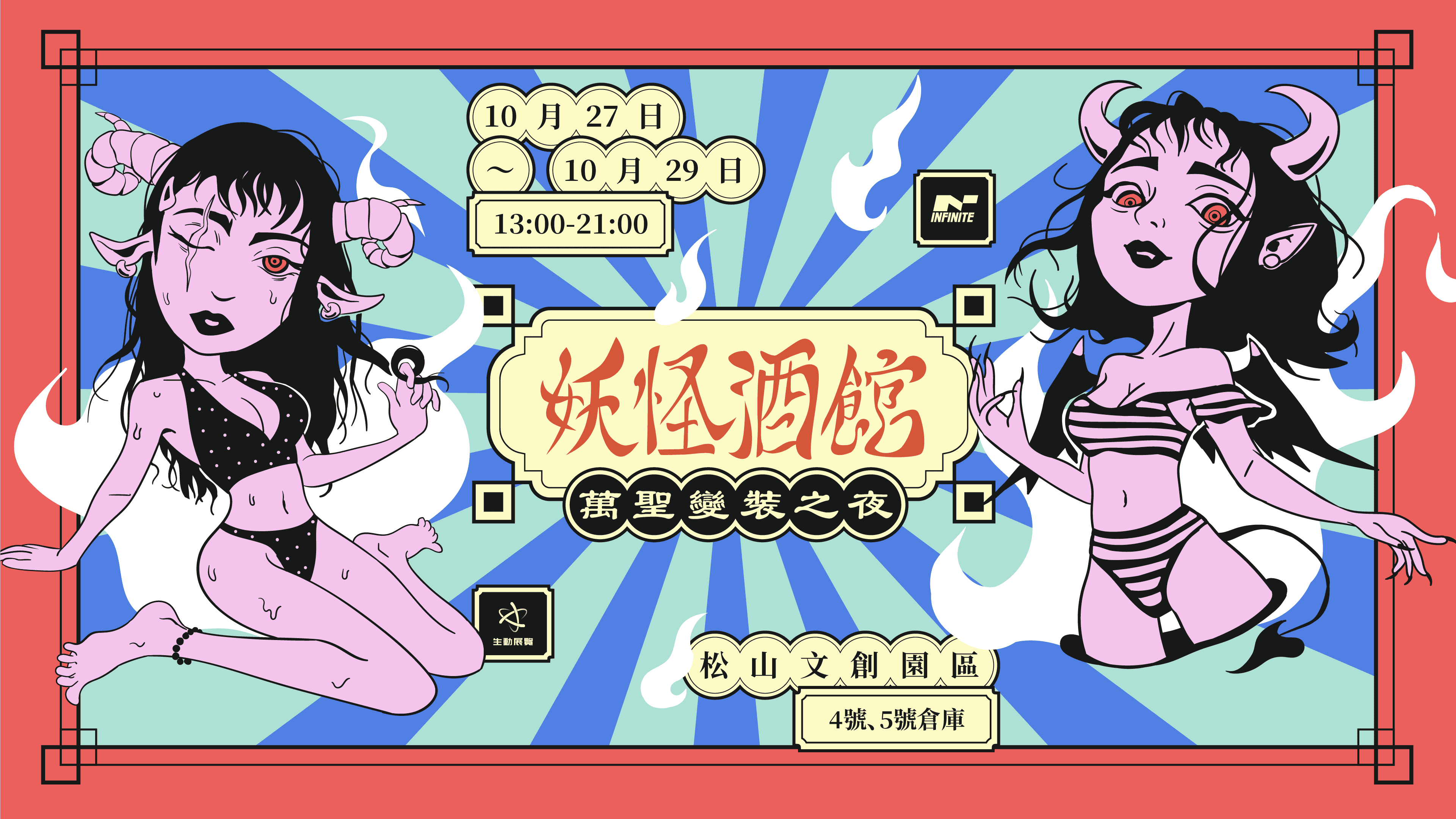 INFINITE 為活動現場提供了多種視覺設計,包括入口佈置、舞台設計、指示牌及展示區。這些設計元素增強了現場氛圍,使參與者能夠沉浸在妖怪與萬聖節的神秘世界中。