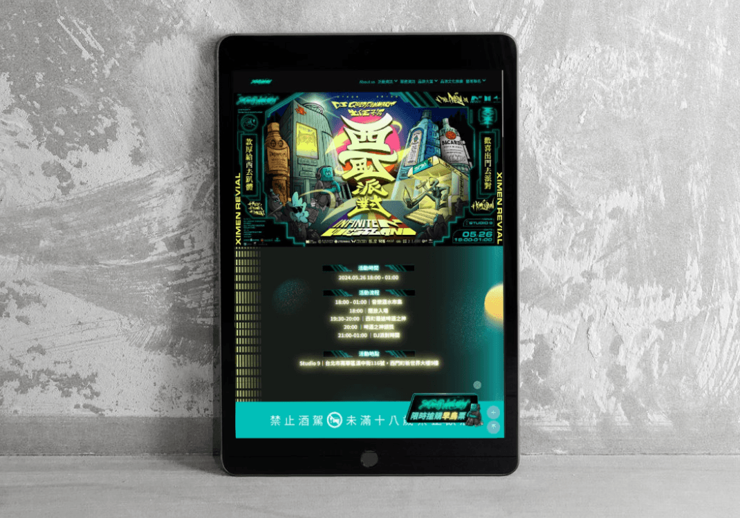 INFINITE 為活動網站設計了多種視覺展示,增強品牌形象及活動現場的氛圍延伸,讓參與者沉浸於特定文化與體驗中。