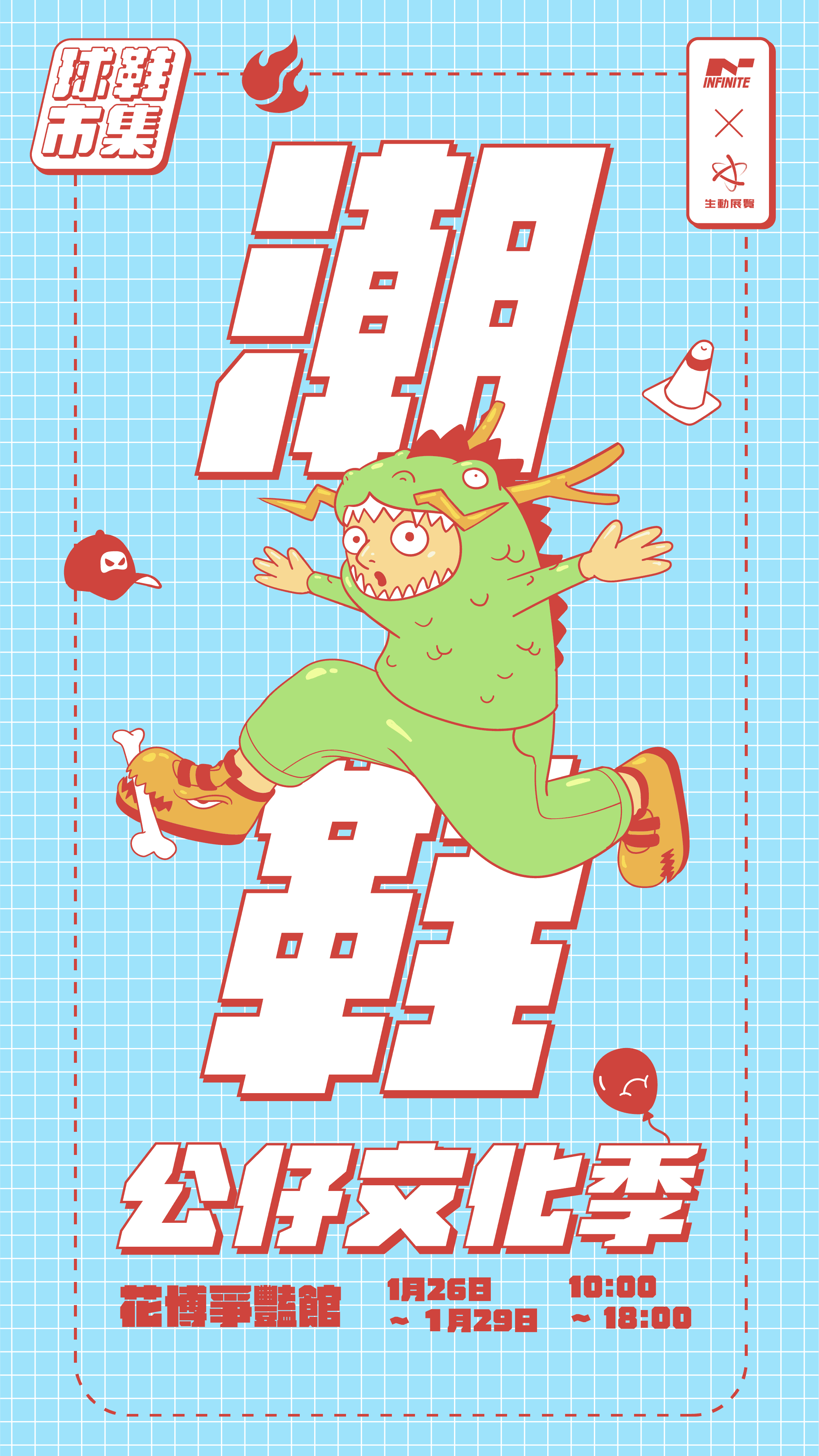 INFINITE 為本次活動設計了充滿活力與創意的主視覺,運用於社交媒體、活動網站及數位廣告中。設計靈感源自於球鞋文化與公仔藝術的融合,成功吸引了大量潮流愛好者的關注。