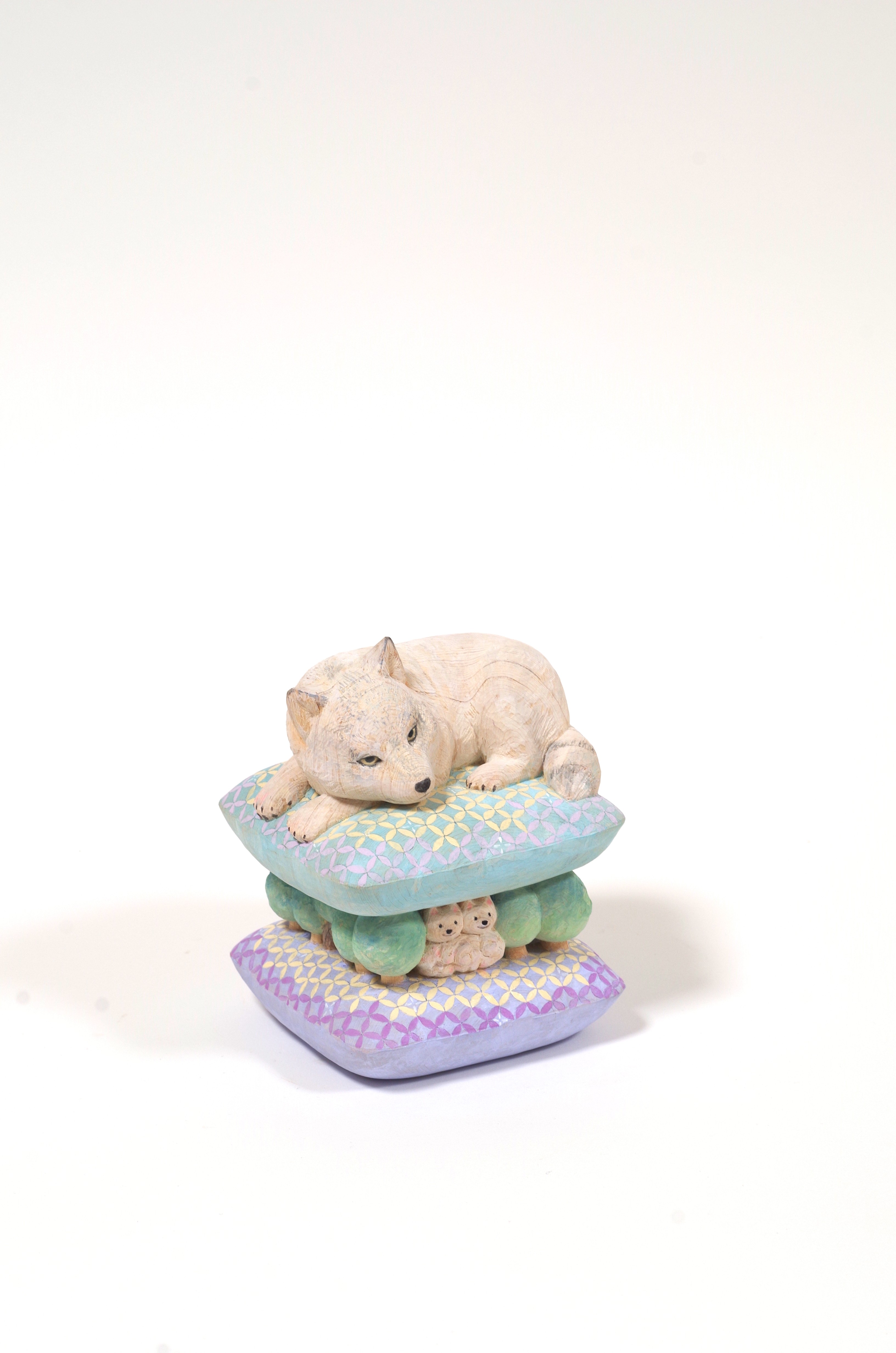 東條明子的創作立足於日本近現代藝術思想中對材料內在性的重視。以「順材而行」回應木頭本身的紋理與重量,讓材料自然成形,其雕塑經常出現動物、孩子與居所等形象,作品多接近「手掌尺度」,拉近觀者與作品之間的距離。