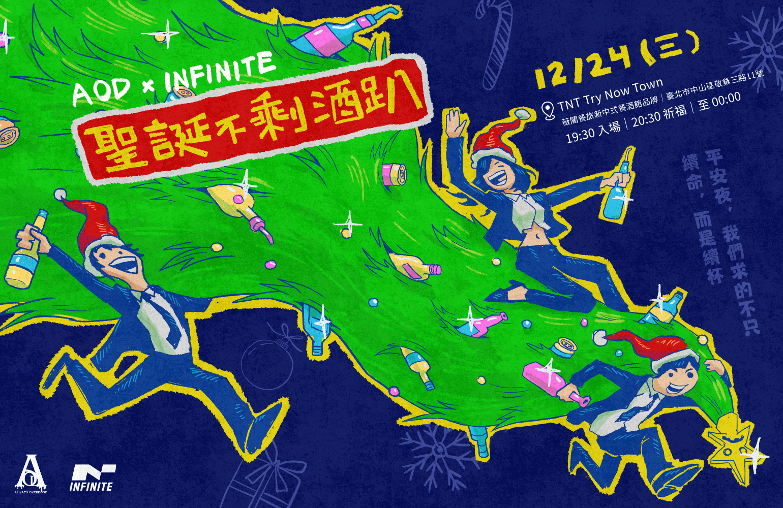 2025.12.24 AOD 再次集結所有社畜,把今年的壓力、煩惱、爛事全部倒進酒杯,用最 AOD 的方式完成聖誕願望:「喝到沒有明天,Always Overdose」!